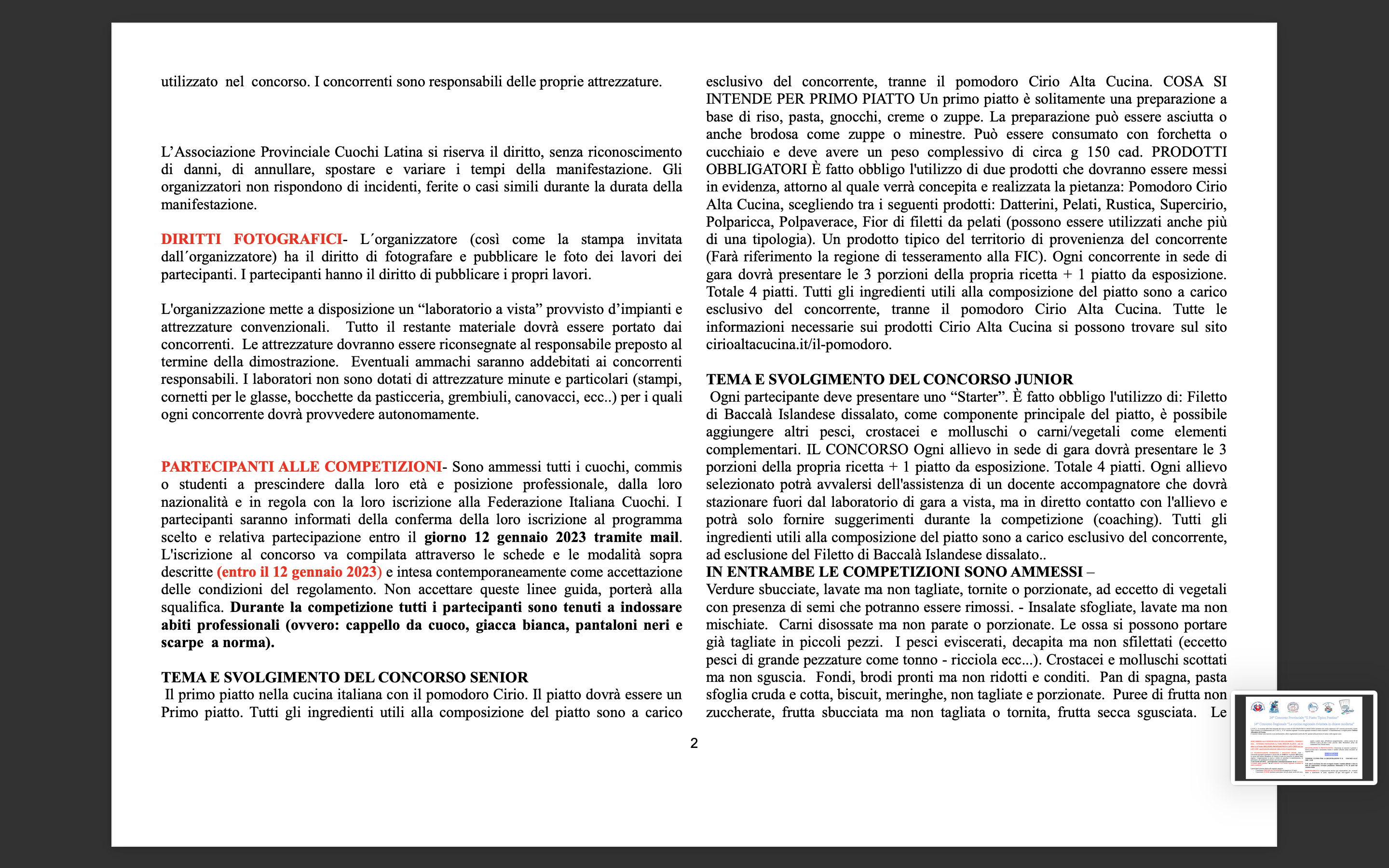 Come ogni anno, due i concorsi per decretare  “ll Piatto Tipico Pontino” e  “La Cucina regionale rivisitata in chiave moderna” ai quali è possibile iscriversi tramite il modello in allegato.